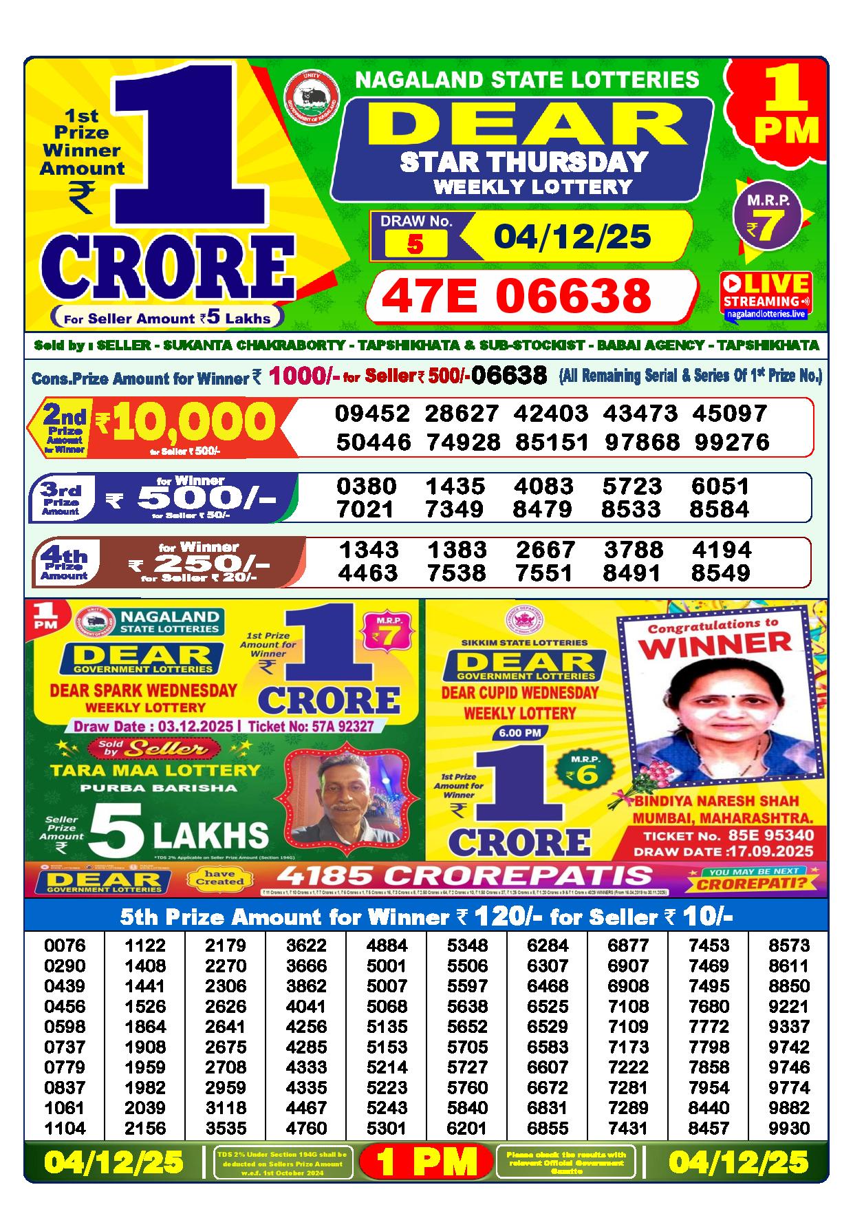Good news! The Nagaland State Lottery Department has just released the results for the 1 pm Dear Lottery chart. It’s time to check your luck for today.