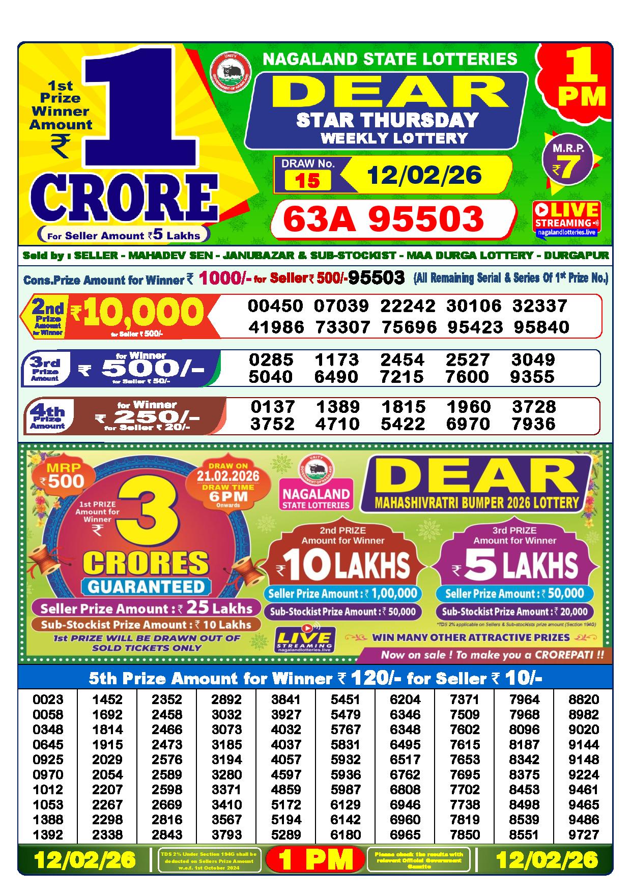 - Different Types of Lotteries: The Nagaland State Dear Result offers a variety of lotteries, including Dear Morning, Dear Day, Dear Evening, Dear Night, and Bumper lotteries. Each lottery has its own set of prizes and ticket prices, giving people choices.