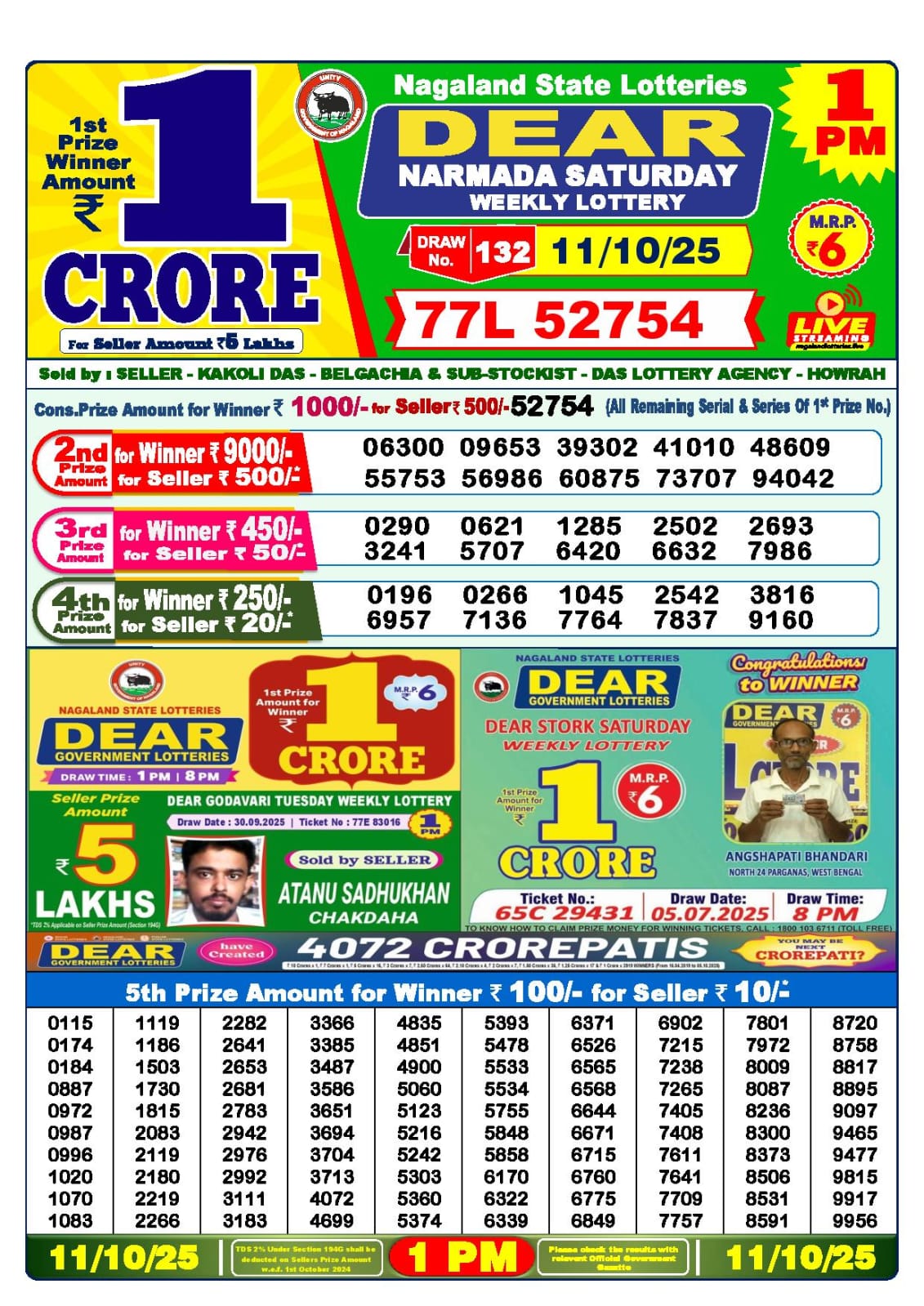 Check out the dear lottery result yesterday 8 PM 6 PM 1 PM on this page. We update the lottery results on the daily basis.
