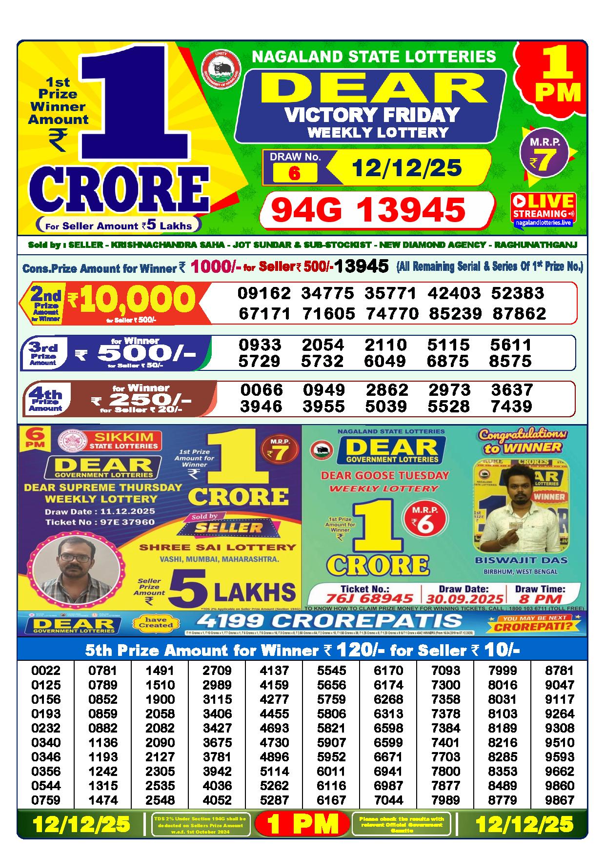 Good news! The Nagaland State Lottery Department has just released the results for the 1 pm Dear Lottery chart. It’s time to check your luck for today.