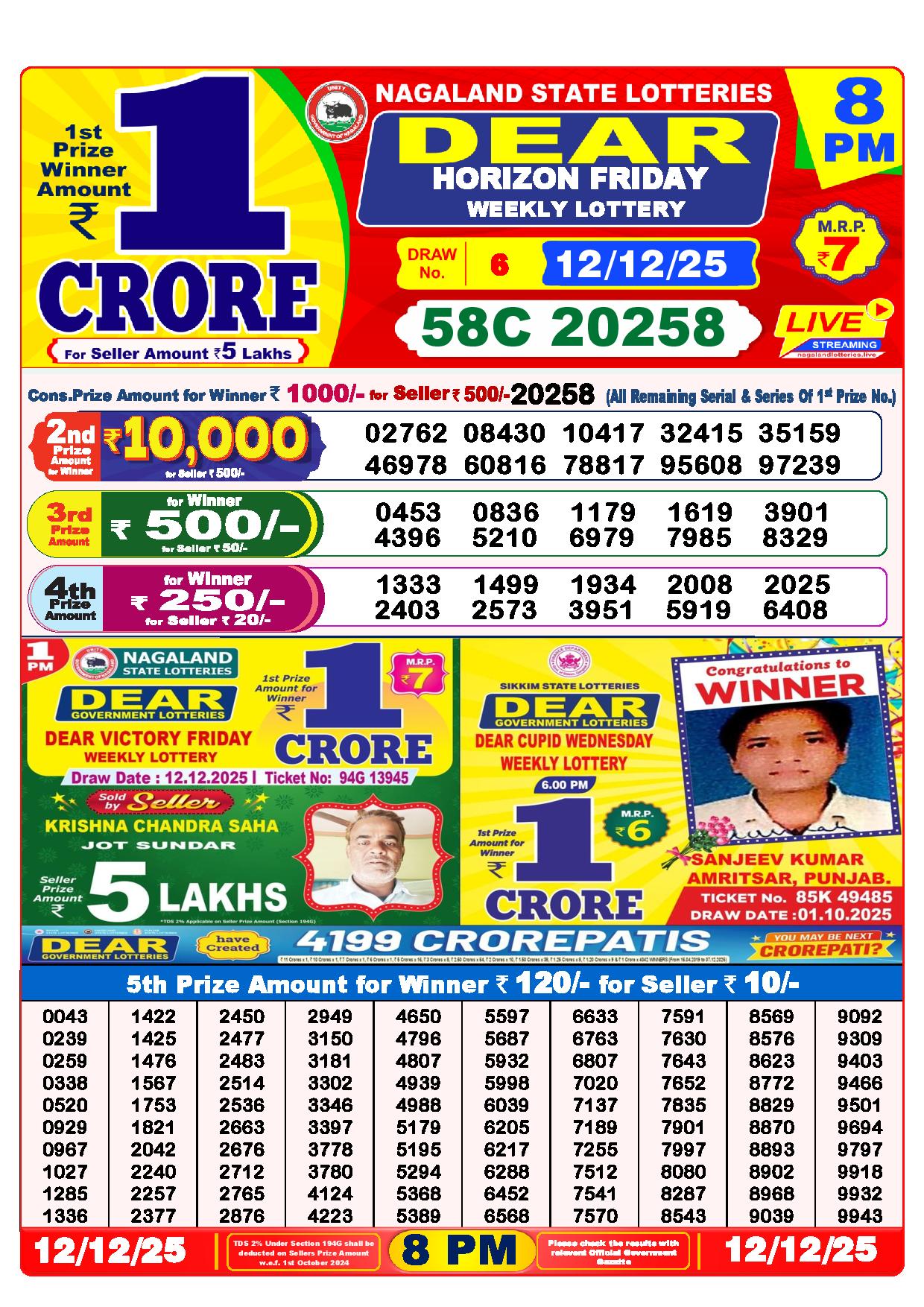 Are you looking for Dear Lottery Result Today? You’re in the right place! We regularly publish the results of the Nagaland State Lottery, including the Dear Chart of Morning, Night, and Evening draws. You can find the latest Sambad Lottery results right here every day.